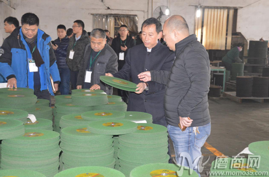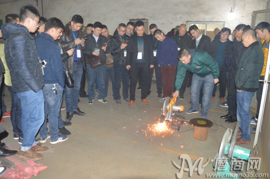 2017年12月11日上午,參加會議的代理商們陸續(xù)抵達盛森磨具工廠,并在盛森磨具董事長許群英的帶領(lǐng)下分別參觀兩個廠區(qū)。車間內(nèi),許群英向各代理商伙伴展示了公司最新的切片產(chǎn)品。據(jù)悉,盛森磨具于今年成功研發(fā)出三代不銹鋼切割片,無論是從產(chǎn)品的切削力度還是耐磨性,都較傳統(tǒng)切片有了更大的提升和突破。為了更直觀地向來訪的各位代理商伙伴們展示產(chǎn)品在實際操作過程中的使用情況,盛森磨具技術(shù)人員在車間內(nèi)為大家進行產(chǎn)品的現(xiàn)場切削演示。
